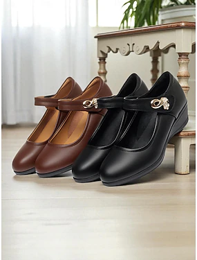 sapatos de trabalho mary jane femininos confortáveis com salto baixo e plataforma - preto &sapatilhas de escritório em couro sintético marrom com fivela decorativa para caminhadas diárias, longas