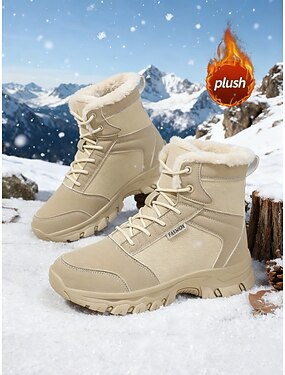 Botas de inverno femininas cáqui para caminhadas, com forro de lã macia – botas de neve antiderrapantes com cadarço para trekking ao ar livre, caminhadas e clima extremamente frio.