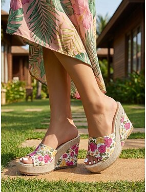 Sandálias femininas de dedo com estampa floral e plataforma, com palmilha acolchoada, modelo casual de verão para mulheres, ideal para caminhadas, férias, praia e viagens. &roupa para uso diário