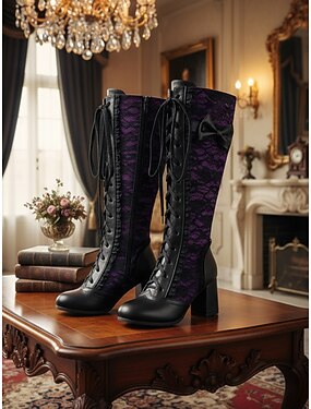 botas de tornozelo vintage vitorianas com cadarço e salto alto para mulheres – botas de salto alto estilo retrô de couro sintético e tecido