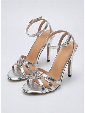 Sandálias femininas chiques prateadas de salto alto com tiras - sandálias minimalistas elegantes de salto agulha com tira no tornozelo para looks do dia a dia e férias de verão. &jantares românticos