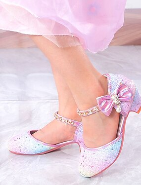 Sapatilhas de ballet infantis com glitter arco-íris, laço e tira de pérolas no tornozelo – sapatos de princesa encantadores