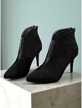Botas femininas pretas de salto agulha - botas de camurça com bico fino e corte em V para um visual urbano chique de escritório e streetwear de outono