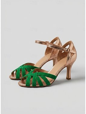 Sapatos de dança latina femininos com glitter, elegantes sapatos de salto fechado com tira no tornozelo para salsa e tango. &ensaio de dança