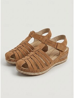 sandálias femininas de cunha com tira de velcro ajustável – calçados de verão confortáveis para caminhadas e uso casual