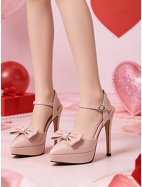 Sapatos de plataforma com laço rosa claro para mulheres, modelo Mary Jane em verniz, perfeitos para encontros no Dia dos Namorados.