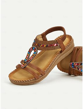 sandálias femininas de cunha bege com detalhes de contas – sandálias plataforma confortáveis no estilo boho para viagens de verão, férias na praia e passeios casuais
