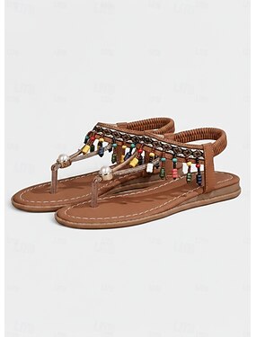 sandálias femininas boho com tiras em T e detalhes em pérolas, sandálias coloridas de tira fina e rasteiras para férias na praia, festivais de verão e roupas casuais
