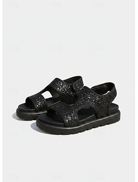 Sandálias rasteiras pretas com tira em T e glitter para mulheres - um toque chique e brilhante perfeito para férias na praia, passeios à beira-mar e viagens para ilhas tropicais.
