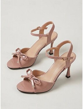 Sandálias femininas de salto agulha com laço prateado, elegantes sandálias de salto alto com tira no calcanhar para noivas, casamento urbano chique &cerimônia noturna