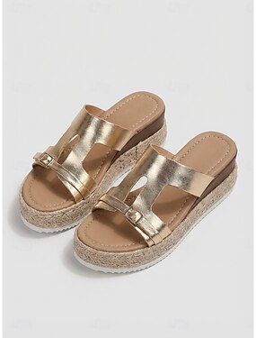 Sandálias plataforma femininas bege de palha trançada - sandálias espadrille confortáveis com salto anabela, perfeitas para férias em ilhas tropicais e cruzeiros de luxo. &estâncias balneares