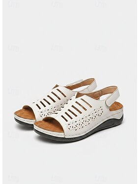 sandálias femininas de cunha com enfeites florais e design perfurado – sapatos de verão confortáveis e elegantes para uso casual e eventos ao ar livre
