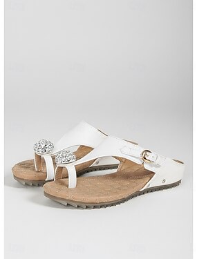 Sandálias femininas brancas confortáveis com plataforma - modelos com duas tiras brilhantes de strass e sola ortopédica, ideais para resorts ao ar livre e férias na praia. &caminhadas de verão