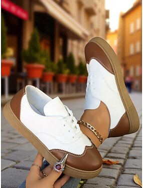 Tênis casual feminino estilo oxford marrom e branco - calçado retrô confortável para caminhada, uso diário e viagens &atividades ao ar livre