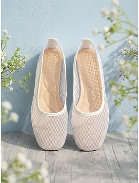 Sapatilhas bailarina femininas brancas de tule transparente com corações - sapatilhas estilo boneca com estampa romântica de renda, calçado respirável e confortável para encontros românticos, looks casuais de primavera e charme para o dia a dia.
