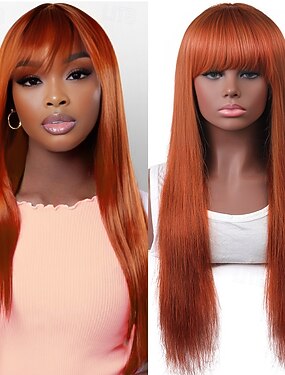 peruca de cabelo humano cor de gengibre peruca feita à máquina peruca de cabelo humano peruca de cabelo liso 150% densidade