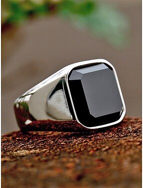 Anel masculino em aço titânio com grande pedra preciosa colorida – disponível em várias cores, design elegante para ocasiões casuais e formais.