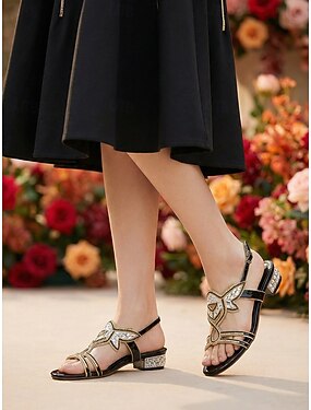 Sandálias de salto baixo cor champanhe para damas de honra - sapatos elegantes com detalhes em strass para casamentos na cidade.