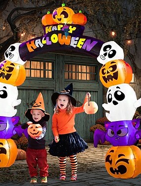 1 peça 2,5m/8 pés abóbora fantasma de halloween modelo de ar inflável luminoso arcos portas de pátio portas de entrada varandas gramado festa de halloween atmosfera luzes decorativas plugue