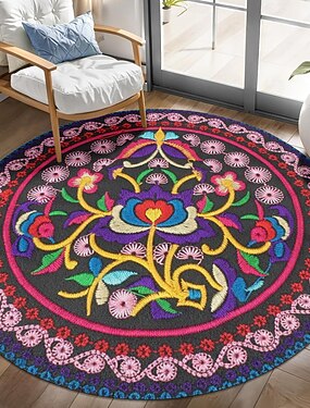Tapete redondo com estampa floral boêmia vibrante em 2D, decoração colorida de mandala para quarto, tapete antiderrapante para sala de estar e corredor.