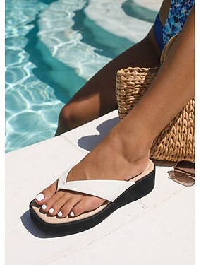 Chinelo plataforma branco feminino - sandálias confortáveis com salto plataforma grosso, perfeitas para férias luxuosas à beira da piscina em resorts tropicais. &viagens de verão para a praia