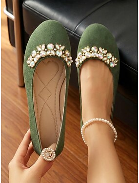 Sapatilhas de ballet femininas cáqui de bico fino - sapatos confortáveis para o trabalho com laço preto &Detalhe em strass para uso diário no trajeto para o trabalho ou no escritório. &traje casual de