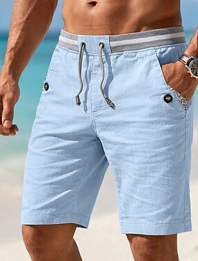 Homens Calção Shorts de linho Shorts de verão Shorts de praia Com Cordão Bolsos Cintura elástica Bloco de cor Cor Única Conforto Respirável Curto Casual Diário Praia Férias Moda ダークカーキ Preto Sem