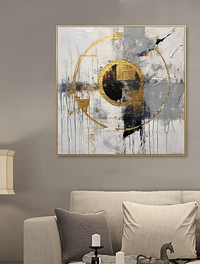 Pintura a óleo artesanal em tela, arte de parede moderna e simples, abstrata em tons de cinza e dourado, para decoração de casa. Pintura enrolada, sem moldura e sem esticar.