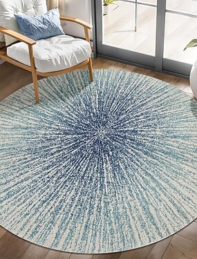 Tapete redondo com estampa de estrela azul radiante, impressão plana 2D, tapete abstrato moderno para quarto e sala de estar, design antiderrapante, tapete elegante para decoração de casa.