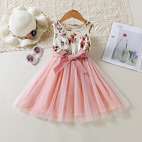 Infantil Para Meninas Vestido Flor Sem Manga Casual Ativo Moda Algodão Acima do Joelho Vestido casual Vestido A Line Verão Primavera 2-8 anos Colorido Rosa