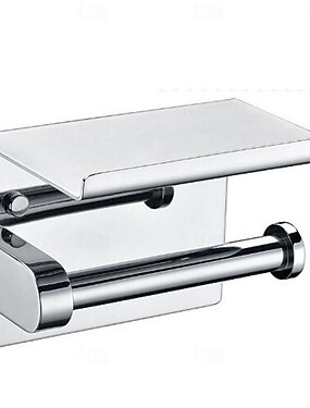 suporte de papel higiênico prateleira de banheiro de aço inoxidável com armazenamento de telefone móvel montado na parede prateado 1 unidade