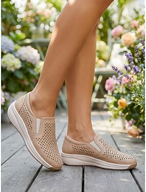 Sapatos femininos marrons respiráveis, sem cadarço – calçados leves e confortáveis para uso casual, viagens, caminhadas e dia a dia.