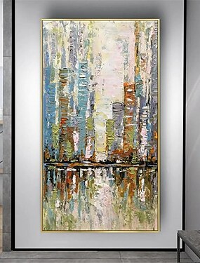 Pintura a óleo artesanal em tela, arte de parede, decoração moderna, abstrata, arquitetura de cidade para decoração de casa, pintura sem moldura rolada e não esticada