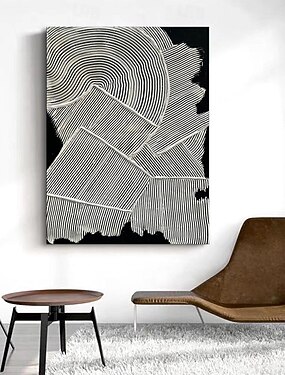Pintura a óleo artesanal em tela, arte de parede, decoração moderna, preto e branco, abstrata para decoração de casa, pintura sem moldura enrolada