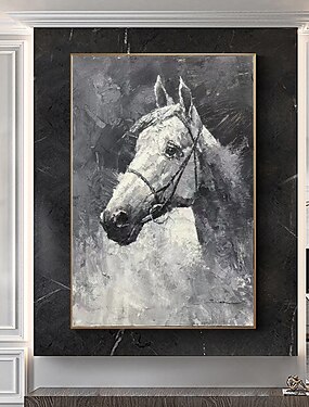pintura a óleo artesanal lona decoração da arte da parede moderno estilo preto e branco animal cavalo para decoração de casa rolou sem moldura pintura não esticada