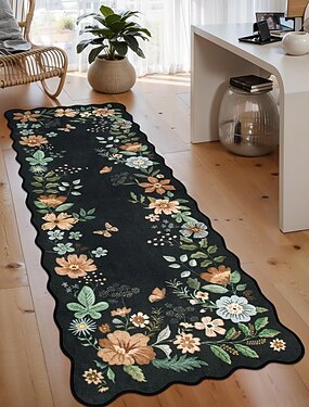 Tapete antiderrapante para corredor com estampa de plantas, flores e folhas, em tecido de flanela, ideal para entrada, banheiro e decoração de casa.