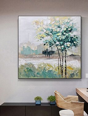 lona de pintura a óleo artesanaldecoração de arte de paredepintura abstrata de facapaisagem de árvore para decoração de casa pintura de suspensão de quadro esticado