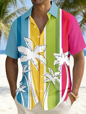 Homens Cor gradiente Coqueiro Camisa Social Camisa havaiana camisa de botão Manga Curta Havaiana Férias Feriado Roupa de Praia Verão Primavera Aberto para a Lateral Impressão 3D camisas de colarinho