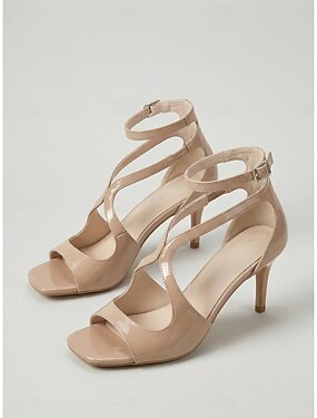 Sandálias femininas nude de salto alto com tiras, elegantes sapatos de bico aberto para convidadas de casamento, casamento no jardim. &eventos formais