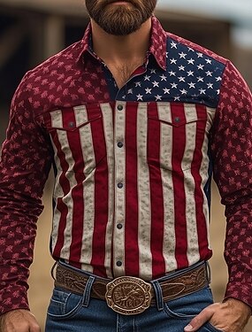 Homens American US Flag Patriótico Camisa Social camisa ocidental Camisa de caubói Manga Longa Vintage retrô Casual Ao ar livre Roupa de Trabalho Primavera Outono Aberto para a Lateral Dois bolsos
