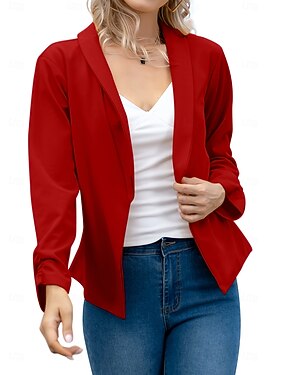 Mulheres Blazer Respirável Confortável Bolsos Casual Tecido Escritório Rua Casual Roupa Diária Abertura Frontal Padrão Aberto para a Lateral Normal Manga Longa agasalhos Preto Branco Rosa Verão