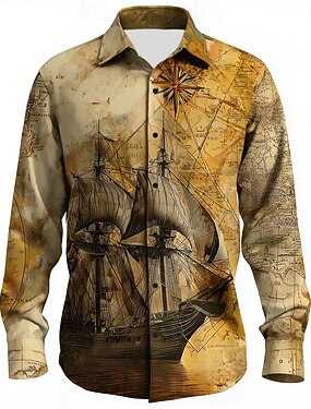 Homens Veleiro Polo com zíper Manga Longa Camisas polo Aberto para a Lateral Com Zíper Vintage Ao ar livre Casual / Diário Streetwear 3D Imprimir Outono & inverno Preto Azul Marron