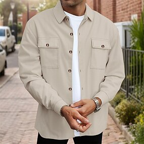 Homens Jaqueta Waffle Jaqueta de Camisa Jaqueta casual Férias Diário Respirável Jacquard Bolsos Primavera Outono Tecido Moda Clássico Lapela Padrão Preto Branco cáqui Verde Tropa Cinzento Escuro