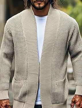 Homens Sueter Cardigan Suéter de malha Estriado Tricotar Padrão Cortado Tricotado Geométrica Xale Aquecimento Contemporâneo Moderno Roupa Diária Para Noite Roupa Inverno Bege M L XL