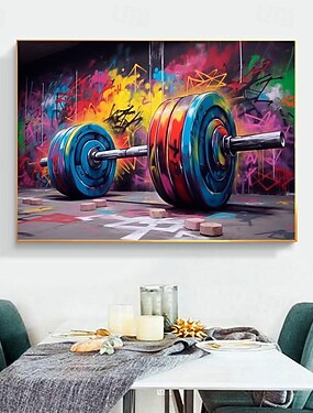 Pintados à mão ginásio lona arte da parede barbell graffiti levantamento de peso decoração esporte motivacional fitness arte da parede decoração para casa grande sem moldura