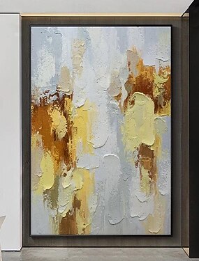 Pintura a óleo 100% feito à mão arte de parede pintada à mão em tela vertical abstrata dourada ainda vida contemporânea moderna decoração de casa decoração lona rolada sem moldura não esticada