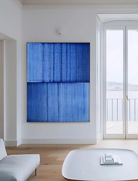 pintura minimalista azul, arte texturizada azul, pintura boho, pintura abstrata azul, arte de parede minimalista contemporânea