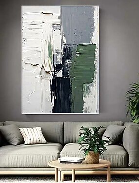 Pintura a óleo abstrata verde e preta, arte moderna texturizada 3D, arte minimalista de parede, arte contemporânea para sala de estar, grande obra de arte geométrica