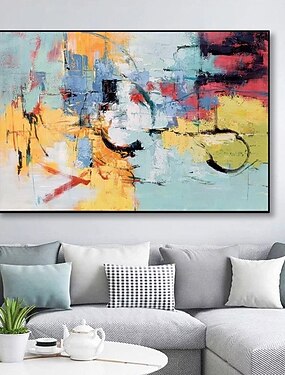 Pintura a óleo artesanal arte da parede da lona decoração abstrata bloco de cores graffiti para decoração de casa rolado sem moldura pintura não esticada