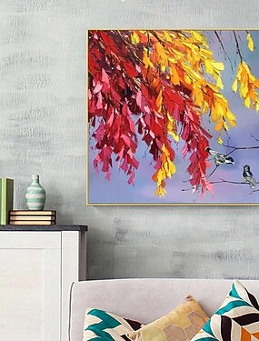 Pintura a óleo artesanal arte da parede da lona decoração abstrata planta pintura colorida folhas de salgueiro para decoração de casa rolada sem moldura pintura não esticada